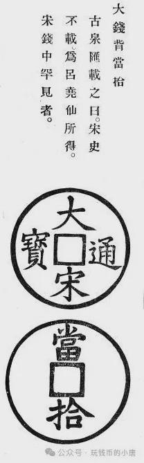 李佐贤《古泉汇》有文字记述:“大钱背文当十,《宋史》不载,为吕尧仙所得,宋钱之罕见者”(见《古泉汇》利十四)。