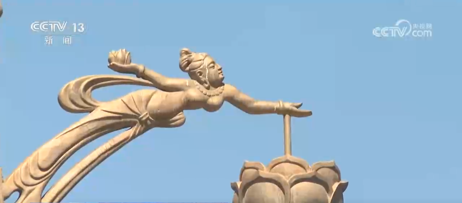 在甘肃敦煌市的城区,飞天造型的路灯随处可见,在外观设计上飘逸的飞天形象、灯杆结构与LED照明融为一体,手持莲花灯的飞天宛如凌空起舞,夜幕下更显灵动。此外,市区的红绿灯上也跃动着小巧可爱的飞天造型。今年新亮相的人行信号灯,则把壁画中的九色鹿投射在斑马线上,既提醒行人遵守交规,也为街头添了一抹童话色彩。